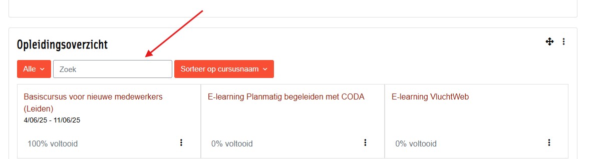 Let op: dit zijn zoektips om te zoeken door je persoonlijk opleidingsoverzicht (onder 'Mijn opleidingen' in de rode balk bovenaan)